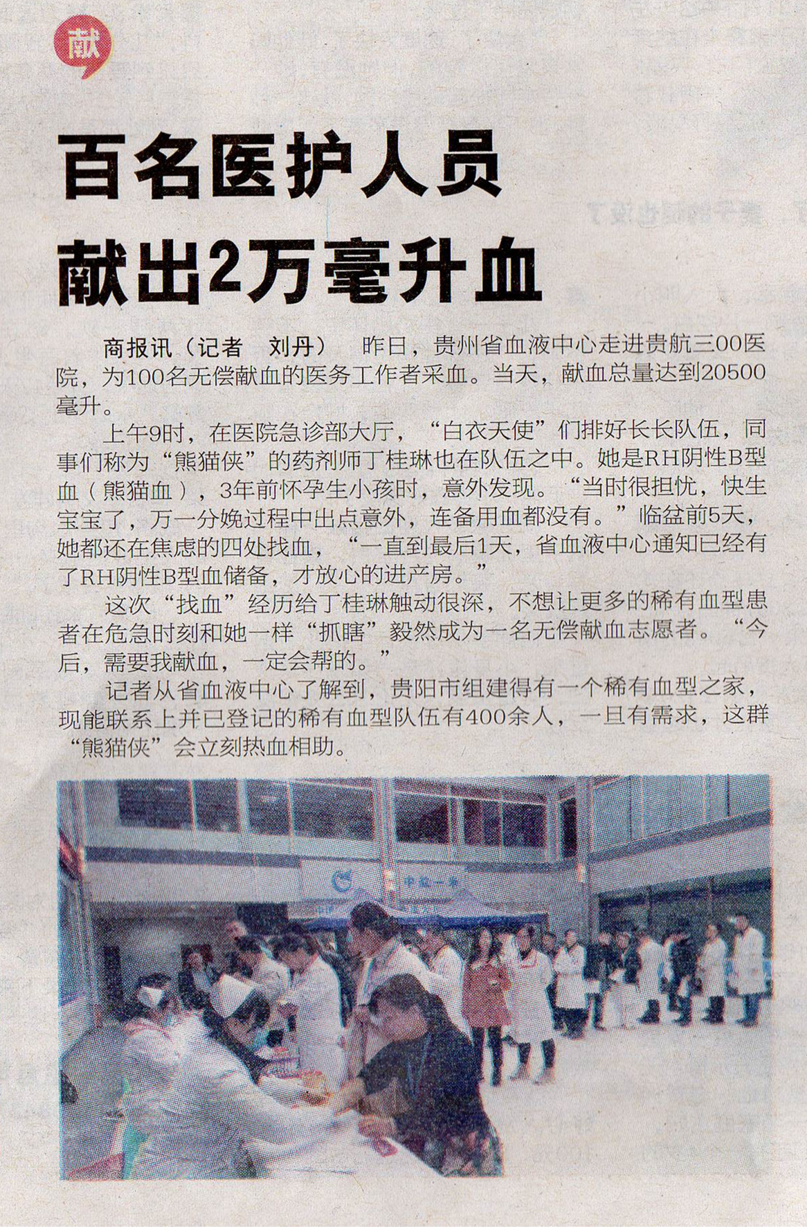 1月9日《贵州商报》:百名医护人员 献出2万毫升血