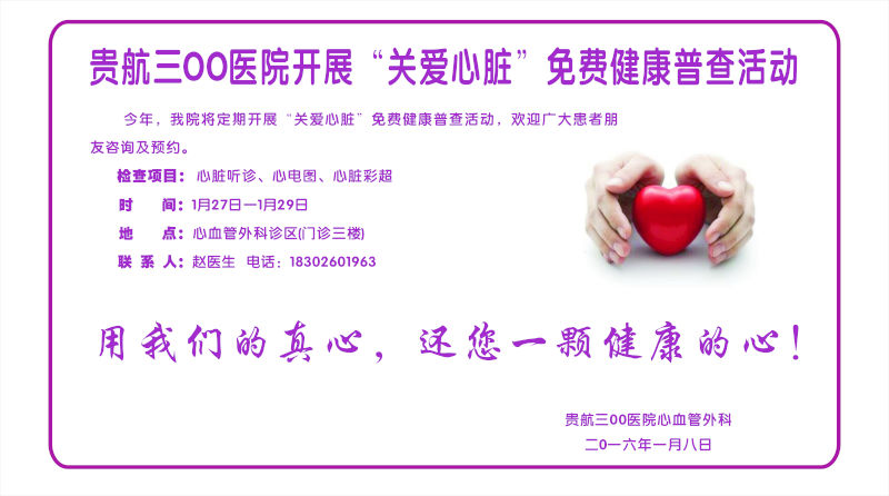 贵航三OO医院开展“关爱心脏”免费健康普查活动