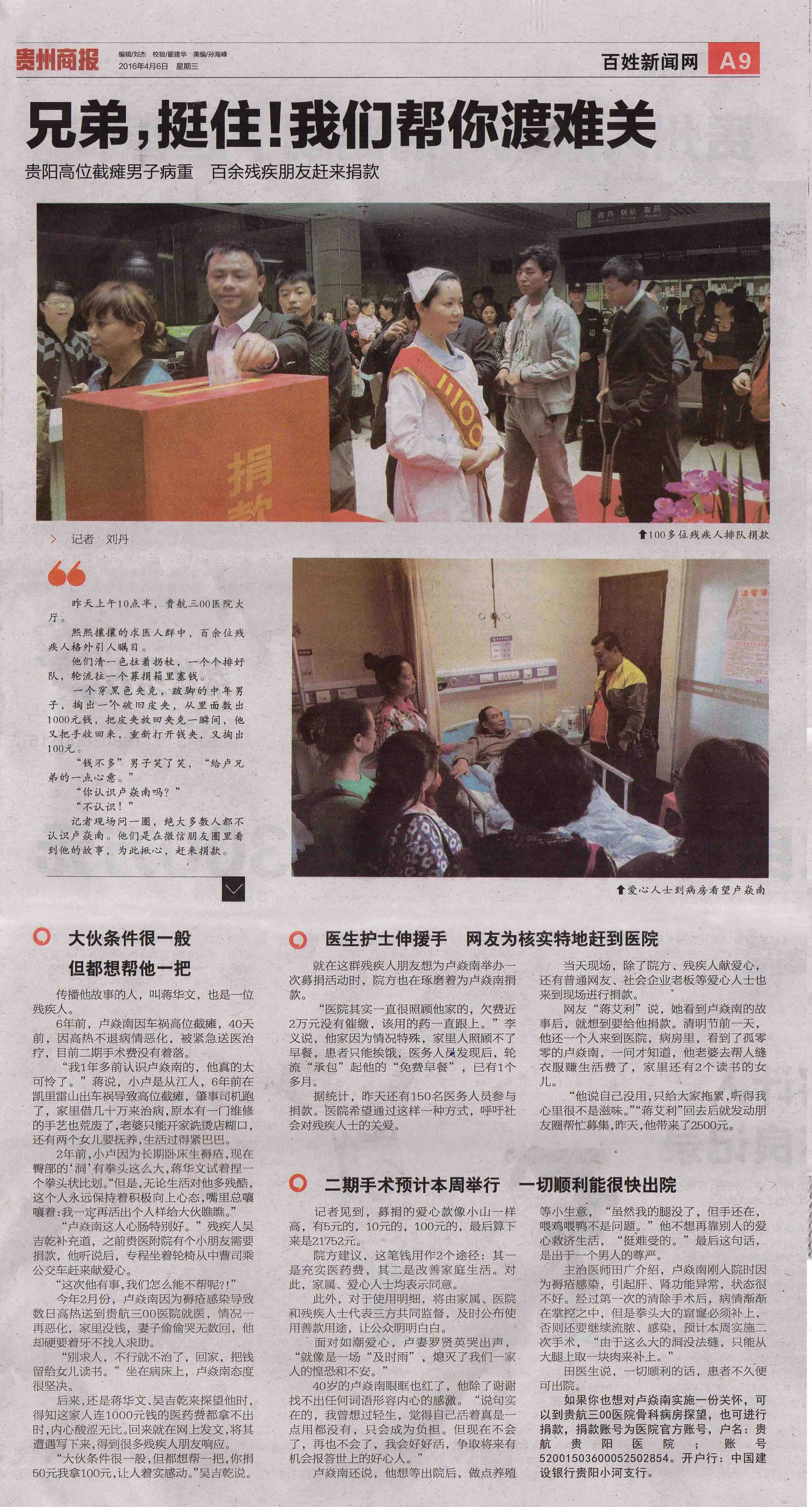 4月6日《贵州都市报》报道:“爱心哥”病倒,收获满满爱心