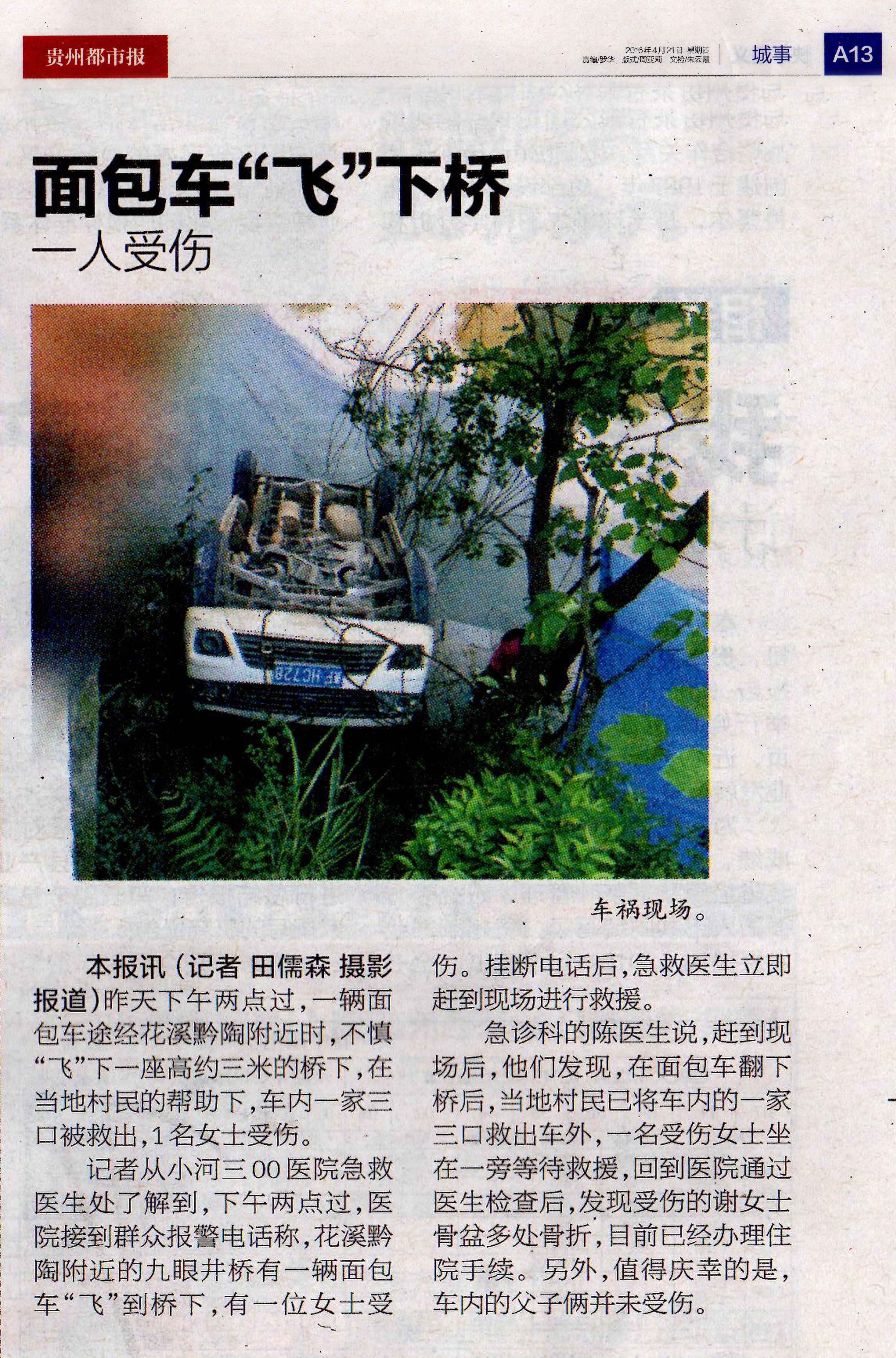 4月21日《贵州都市报》报道:面包车“飞”下桥