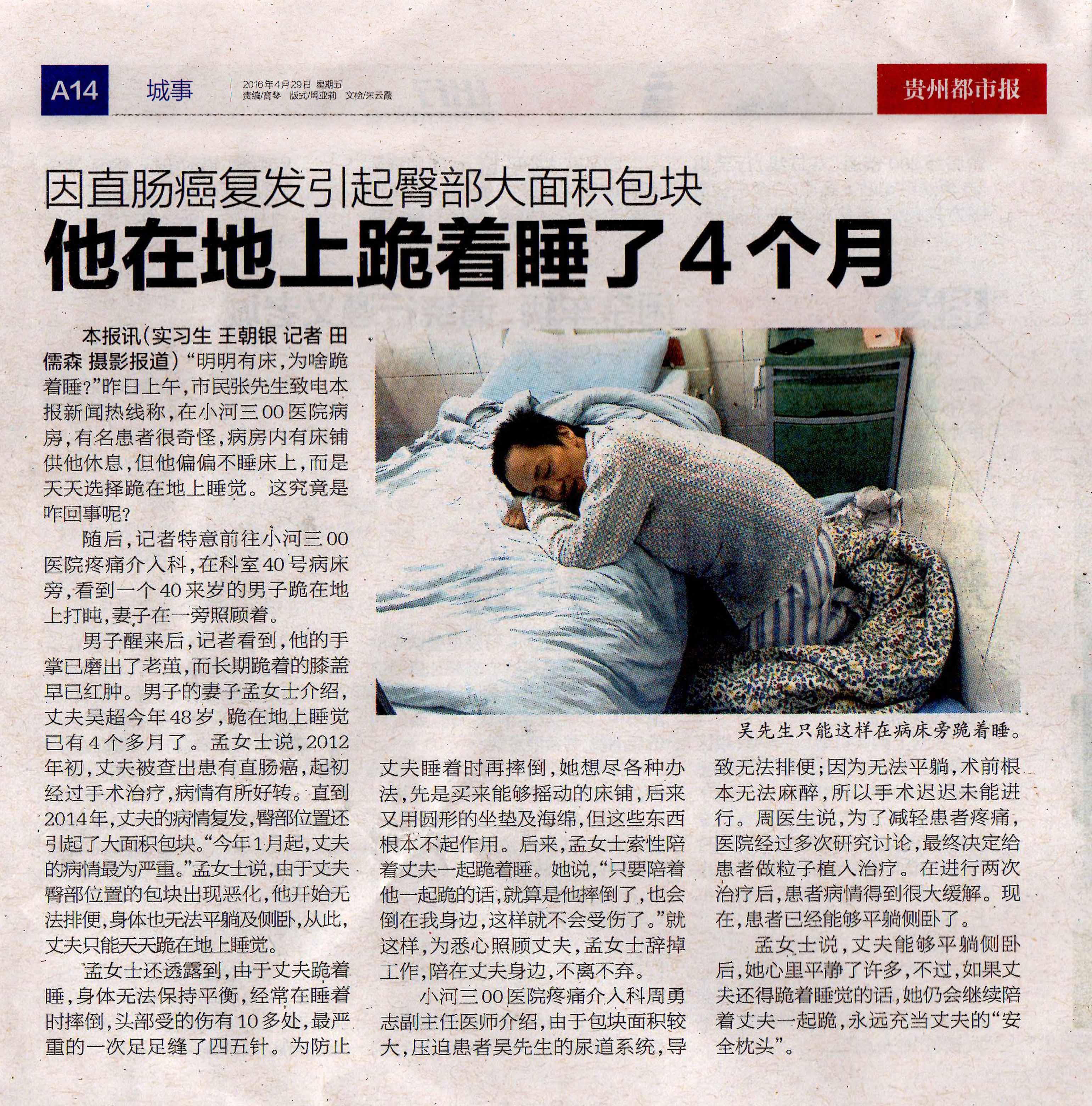 4月29日《贵州都市报》报道:他在地上跪着睡了4个月
