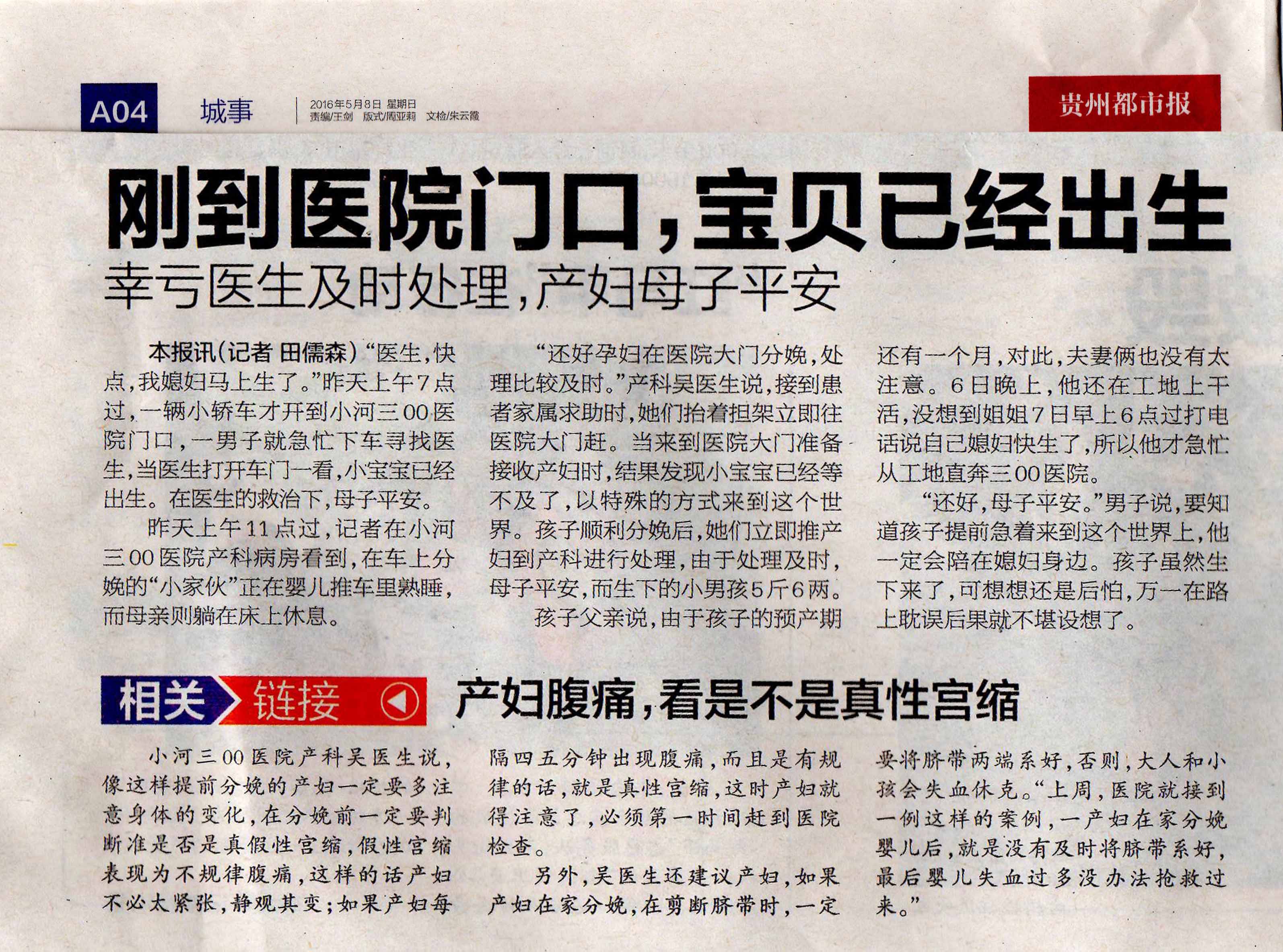 5月9日《贵州都市报》报道:刚到医院门口,宝贝已经出生