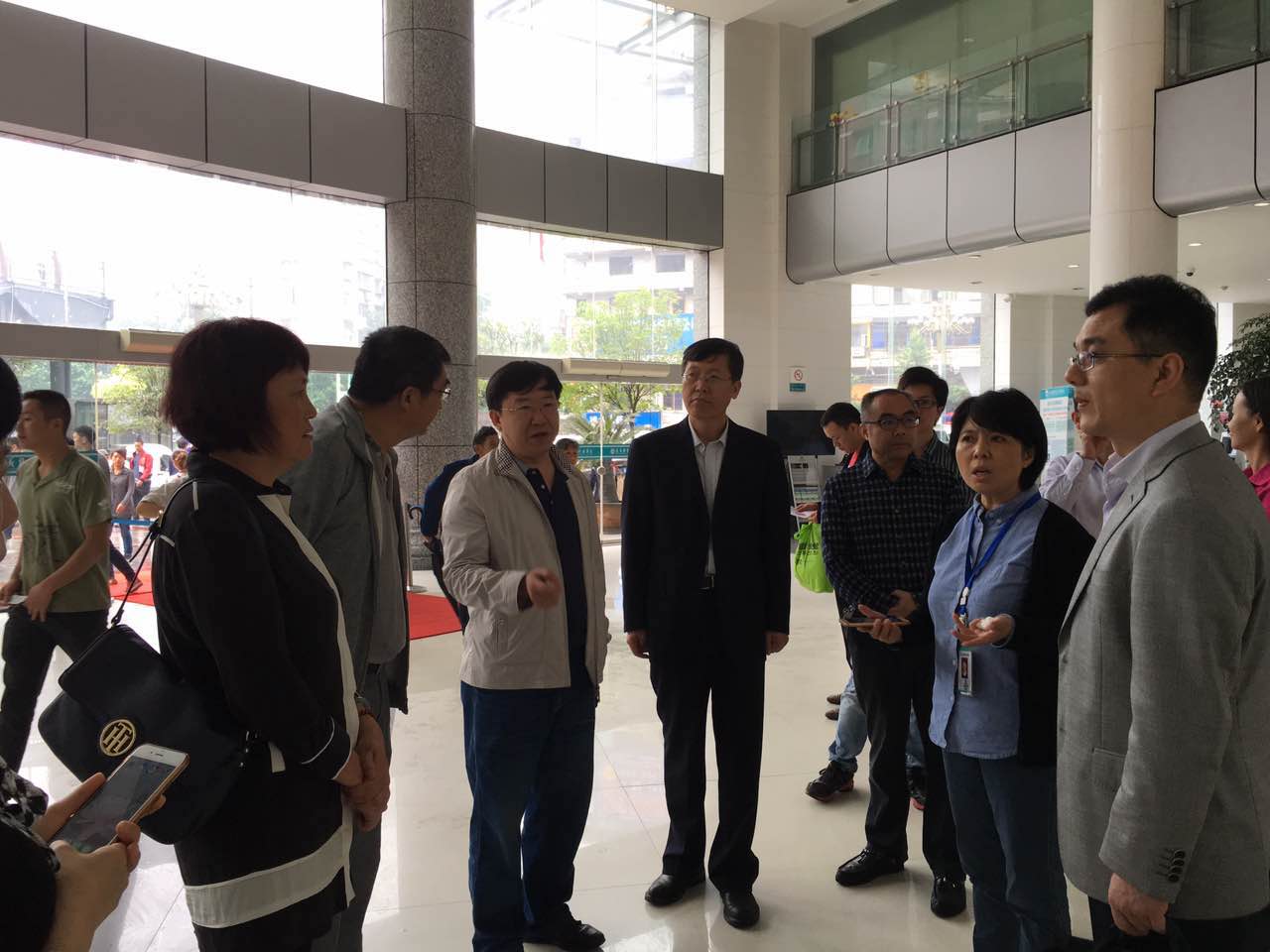 上午,沈院长一行在遵义医学院附属医院副院长郑洪的陪同下参观了门诊大厅、急诊大厅以及相关科室、部门,主要学习了遵义医学院附属医院的门、急诊就诊流程、先进的预约就诊理念等。整洁、温馨、宽敞、明亮、舒适的就医环境以及井然有序的良好就医秩序给大家留下了深刻的印象。参观人员纷纷表示,希望今后能与遵医附院加强联系和交流,相互学习,共促发展。