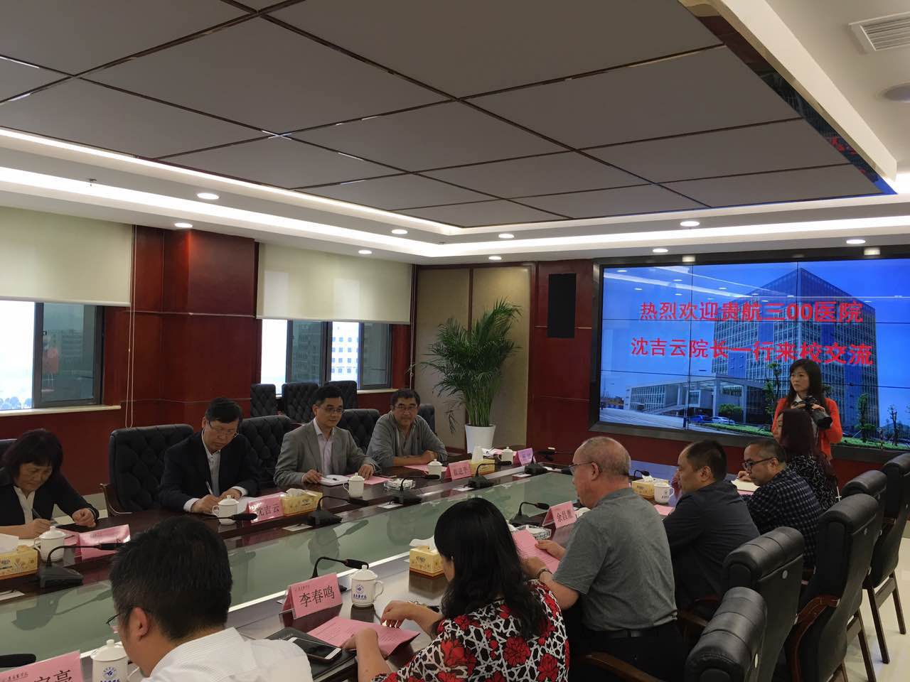 下午,遵义医学院党委书记石京山,学校副校长李春鸣、余昌胤以及相关部门负责人热情接待了沈院长一行。座谈会上,遵义医学院党委书记石京山致欢迎辞,对沈院长一行的来访表示欢迎。并指出,遵义医学院将全力帮助三OO医院,近期将组织专家到三OO医院开展教学,进一步提升三OO医院在教学、科研等方面的管理水平。沈吉云院长代表医院全体干部、职工对遵义医学院对我院的大力支持表示衷心的感谢。宋业纯副院长就我院三年来在临床、教学、科研等方面的情况作了汇报。