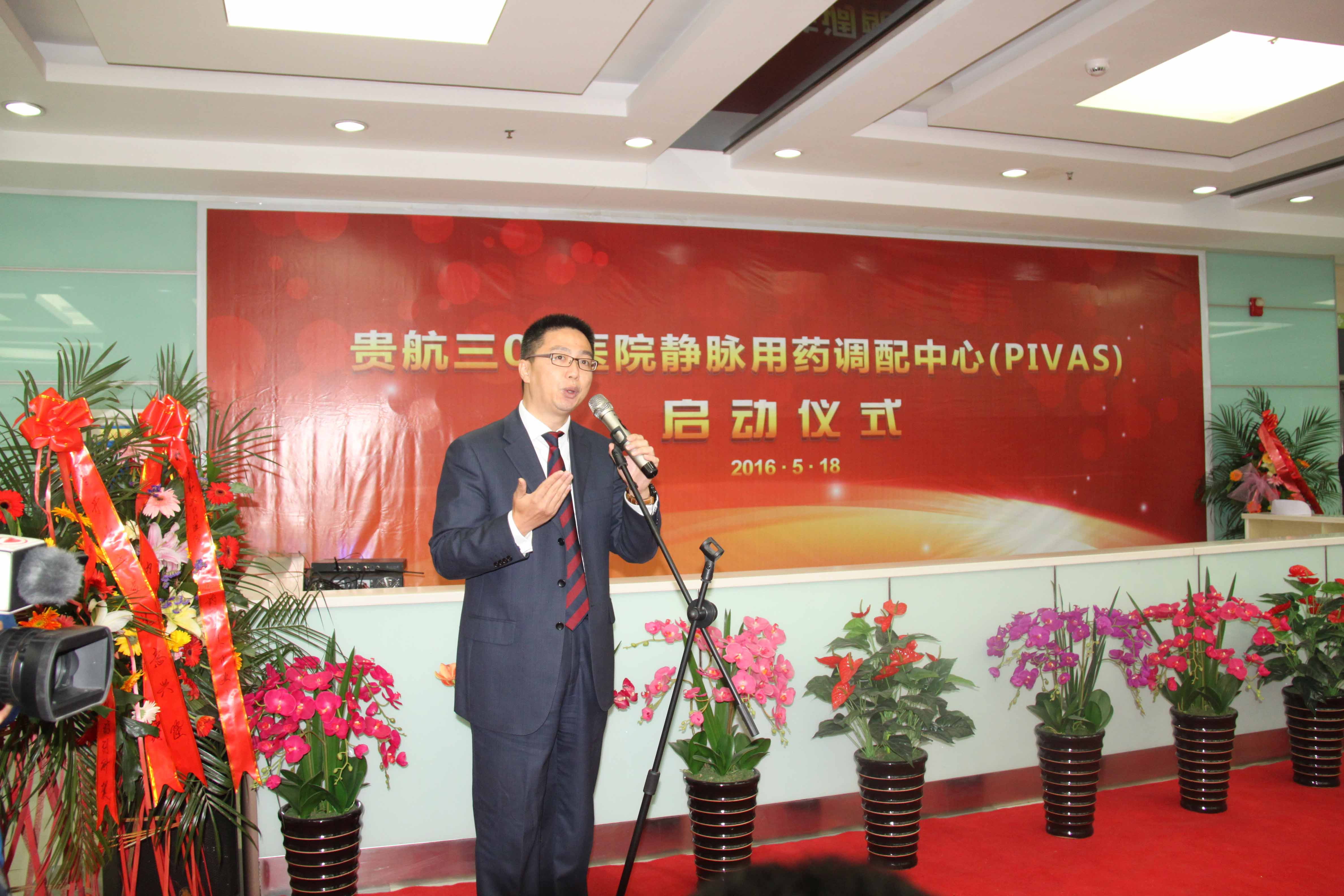 宋业纯副院长代表院长、党委书记向前来参加仪式的专家、主任们表示热烈的欢迎和衷心的感谢,医院将以成立静脉用药调配中心为契机,建立临床药学平台,进一步提高输液质量的准确性,确保患者安全。贵航资产公司高级专务陈立明希望我院把调配中心管控好发展好,更好地为患者服务。