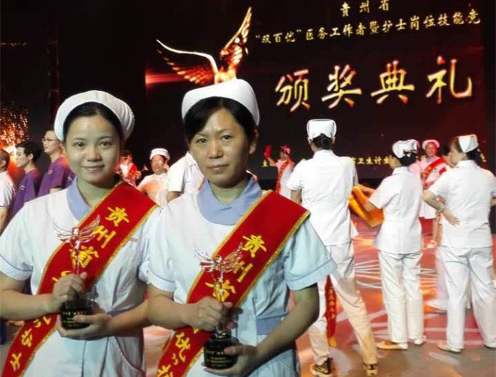 6月28日,贵州省“双百优”医务工作者暨护士岗位技能竞赛颁奖典礼在贵州饭店国际会议中心隆重举行。颁奖典礼上,我院肿瘤科胡家艳、心血管外科王仕杰荣获贵州省“百优护士”称号