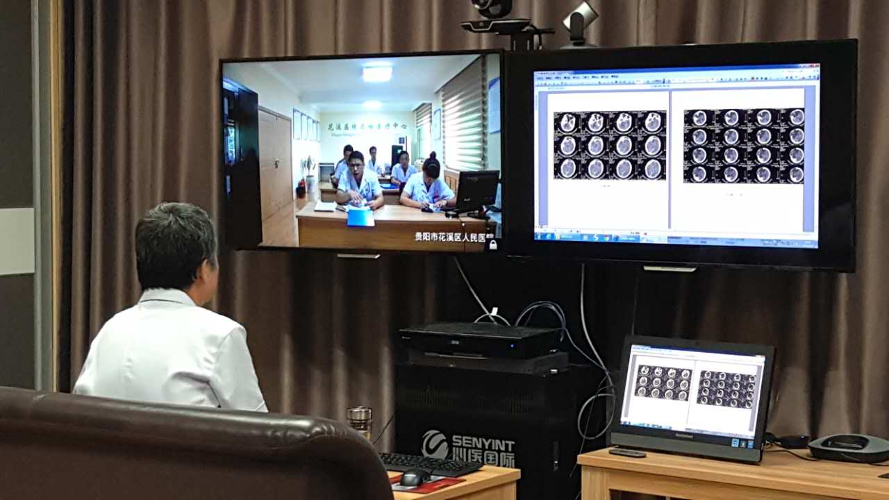 7月4日下午,我院与花溪区人民医院进行首次远程医疗会诊。通过医院远程会诊管理系统,将两所医院链接在一起,医护人员实现了实时交流,为当地患者进行了现场会诊。我院神经外科、肝胆肠微创外科的相关专家对花溪区人民医院几名疑难病例患者进行了远程会诊。