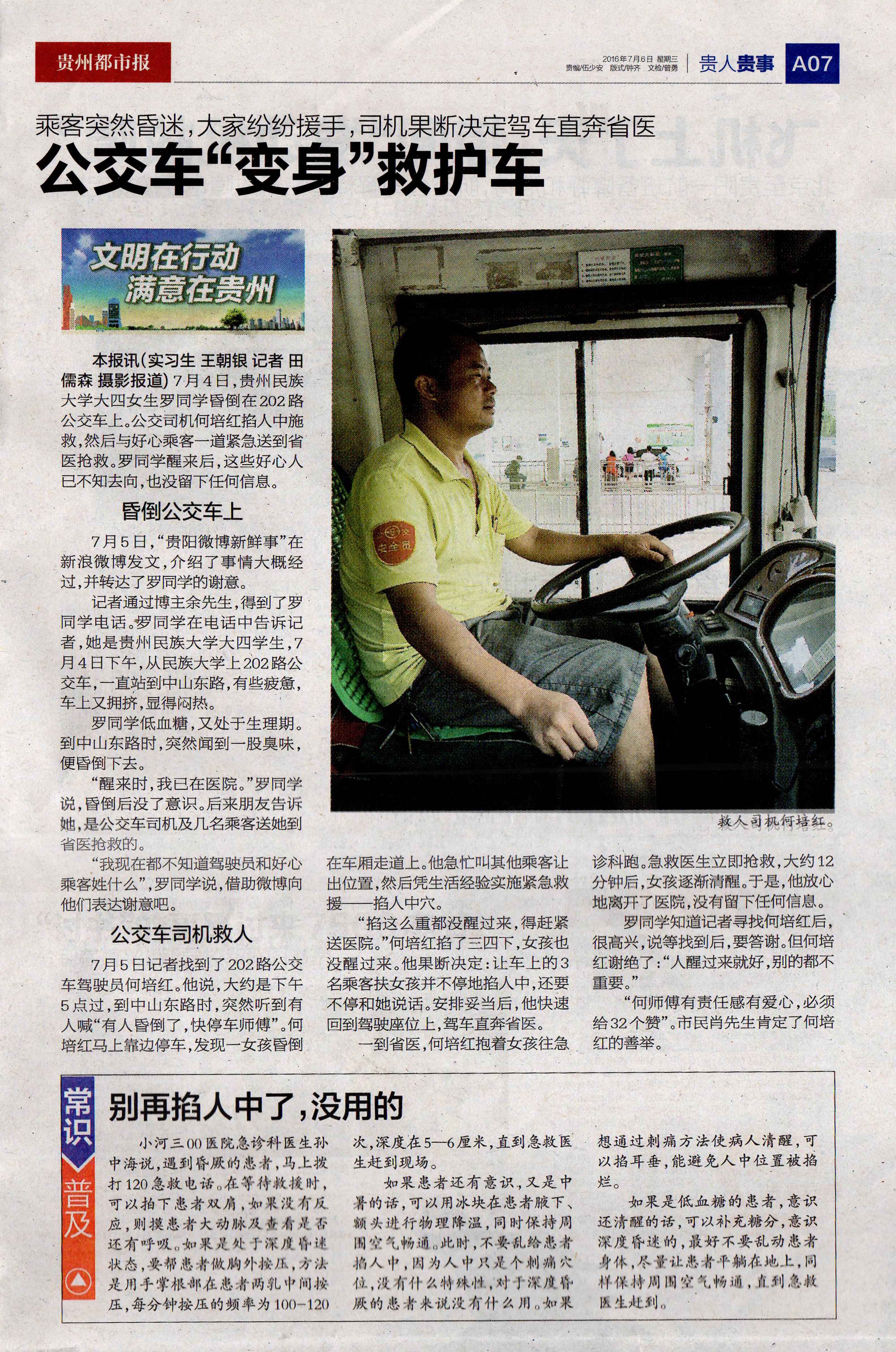 7月6日《贵州都市报》报道:公交车“变身”救护车
