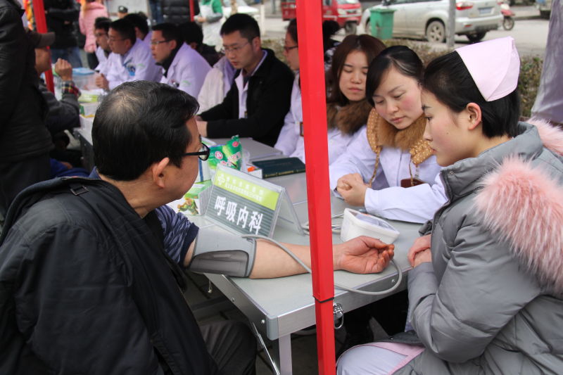昨天下午,我院在小河区漓江广场举行大型义诊服务活动。呼吸内科、神经内科、心内科、微创外科、中医科、消化内科、妇科、眼科、骨科、介入科、泌尿外科等科室16名医护人员为社区居民提供健康咨询、测血压、免费赠送药品等医疗服务。