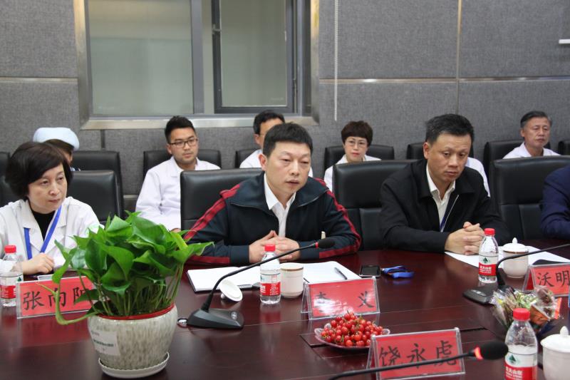 4月21日,院领导李义、沃明黔、赵敬飚、宋业纯、相关职能部门负责人和临床科室有关人员在四楼会议室迎接省卫生计生委饶永虎一行,接受专家组对我院进行“省新农合重大疾病定点救治医疗机构”现场评审。