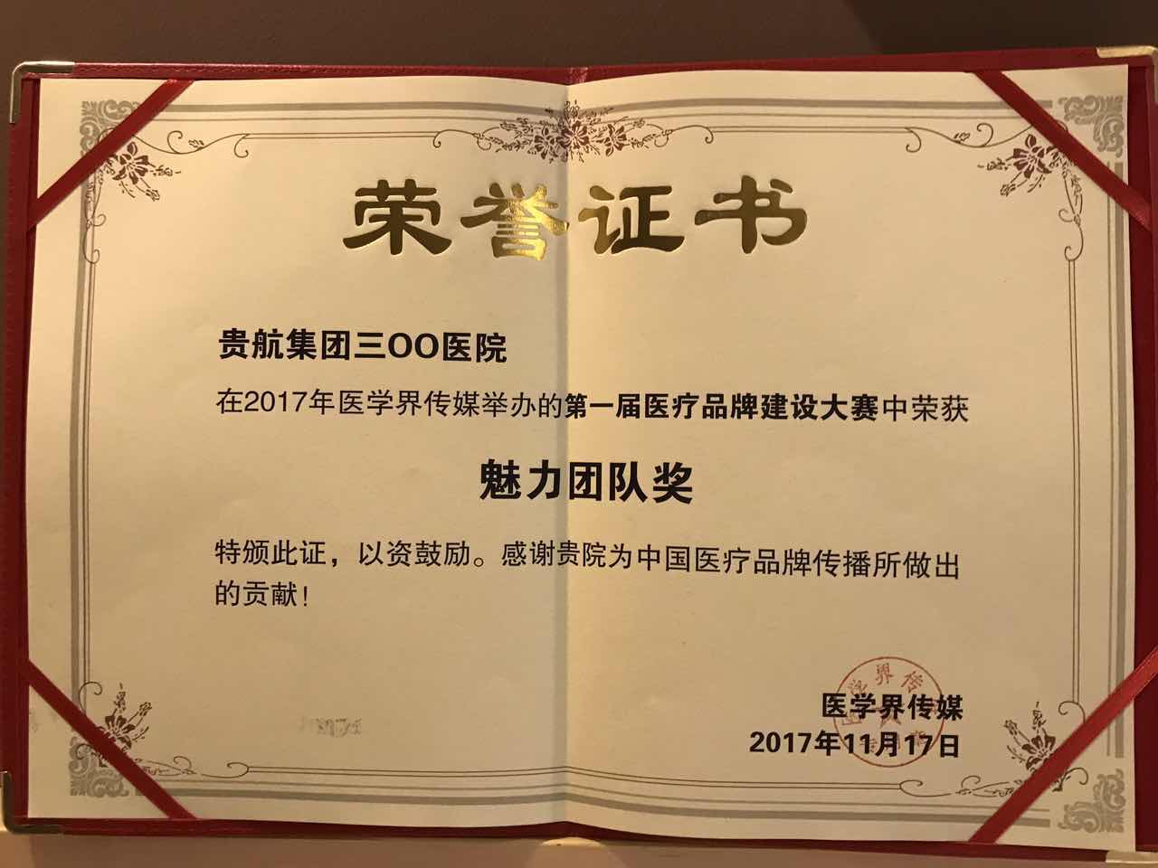 11月17-18日,第三届中国医院宣传年会暨第一届医疗品牌建设与传播高峰论坛在深圳召开。来自全国各地的500余家医院、700多名代表参加了医学界一年一次的宣传盛会。会上,举行了第一届医疗品牌建设大赛决赛及颁奖仪式,我院品牌策划部以优异的成绩荣获第一届医疗品牌大赛魅力团队奖。