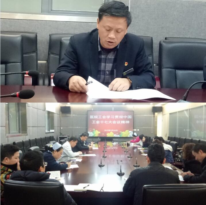 2019年2月26日上午,院工会组织工会干部在四楼大会议室学习贯彻中国工会十七大会议精神,参加会议的有工会主席沃明黔、副主席詹红阳、以及各支会主席。