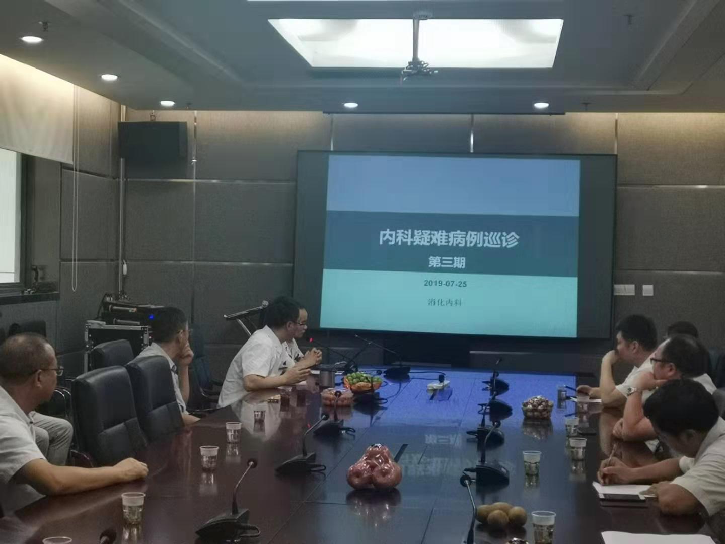 7月25日下午,第三期内科疑难病例巡诊在四楼大会议室如期召开,院长助理、消化内科主任朱键主持此次疑难病例巡诊,贵州医科大学附属医院周力教授,医教部副主任张向阳,临床各内科、骨科、急诊科、医学影像科、检验科、药剂科等科室医务人员,以及住培学员40余人参加了此次巡诊。