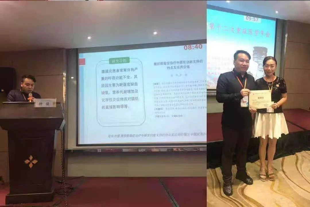 我院重症医学科主任钟俊一行六人参加了本次年会,并主持了大会第三分会场两位讲者的专题报道,随后在会上作了题为《膈神经功能检测在弥漫性腹膜炎所致脓毒症患者机械通气车技过程的临床运用》的专题报告,此次专题讲解贴近实战、由浅入深、饱含激情,受到了参会同行的一致好评。