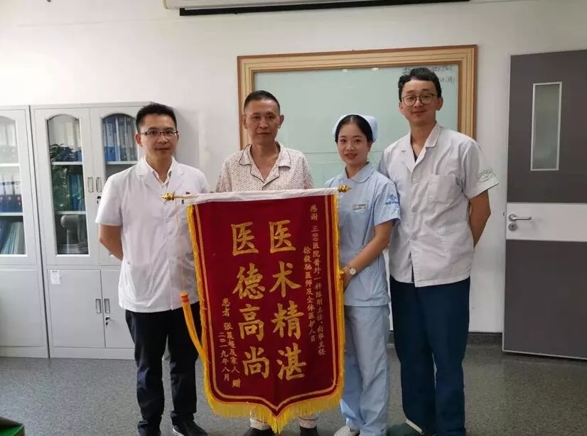 近日,我院普外一科一位已好转出院患者及其家属来到我科,向科室医护人员送上一面锦旗,感谢陈刚教授、向华主任、徐毅驰医生及全体医护人员对其的认真负责及悉心照顾。