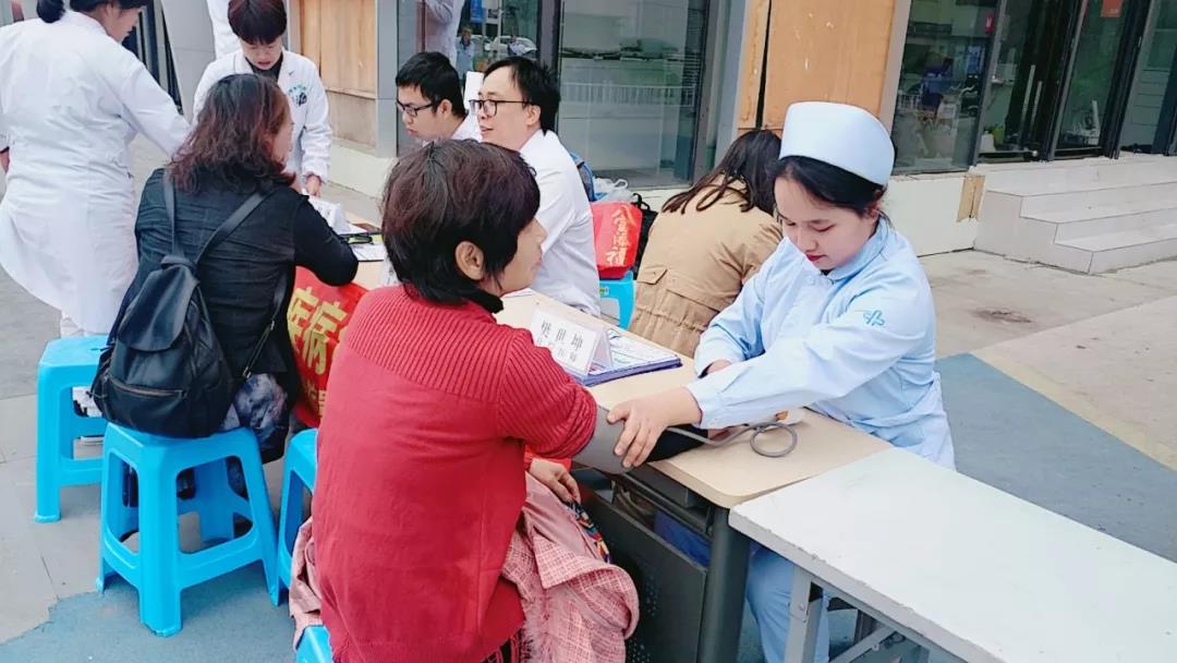医务人员们通过悬挂横幅、发放宣传手册和口头讲解等方式向来往的居民宣传社区健康常识以及国家基本医疗政策,并为广大居民提供义诊、健康咨询等卫生服务,受到广大居民的热烈欢迎。医护人员尽职尽责,对居民进行血压、血糖等常规检查,针对每个居民的不同情况,医生耐心地叮嘱他们各种日常注意事项,详细介绍防病和养生知识,提出合理的膳食、运动等生活指导,做到“未病先防”、“既病防变”、“预后防复”。活动当天,虽未阳光高照,但医务人员热情似火地为广大人民群众提供义诊服务,受到了居民的一致好评。
