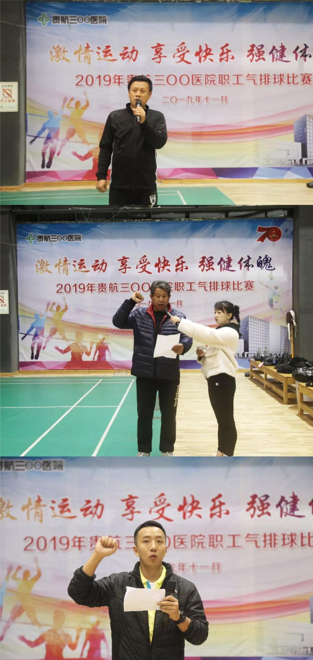 为增强职工体质,引导职工健康的业余爱好,促进医院文化建设,11月23日上午8点,由我院工会举办的庆祝新中国成立70周年系列活动--“激情运动•强健体魄•享受快乐”首届职工气排球比赛开幕式在贵航职业技术学院隆重举行。出席本次活动的有医院党委副书记、工会主席沃明黔、副院长赵敬彪、副院长周青、工会副主席詹红阳,以及裁判员和工作人员,本次比赛共有40支参赛队280名职工参加。