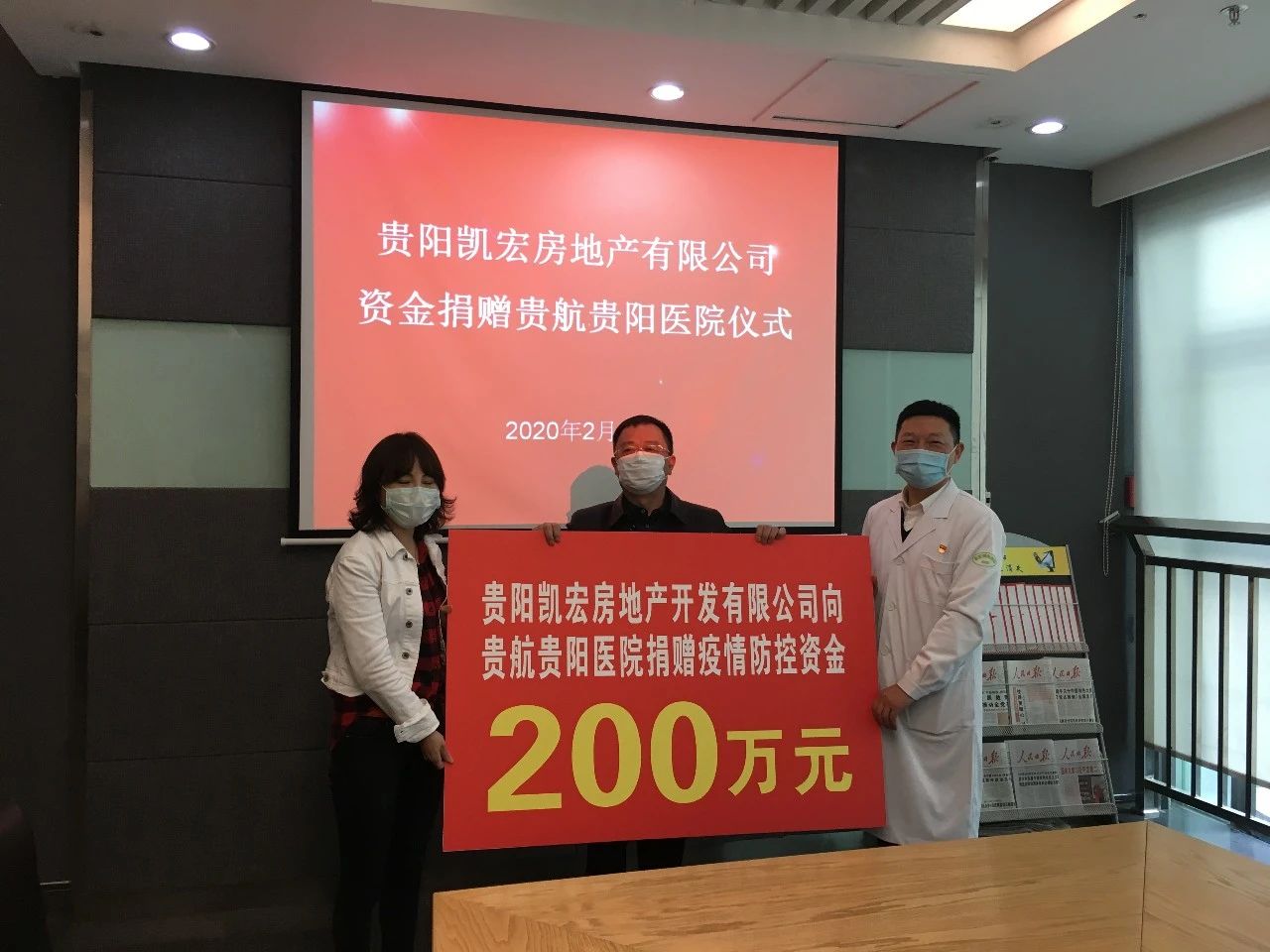 来自经开区政府与辖区各界人士的温暖——贵阳凯宏房开公司在经开区领导陪同下向我院捐赠200万元