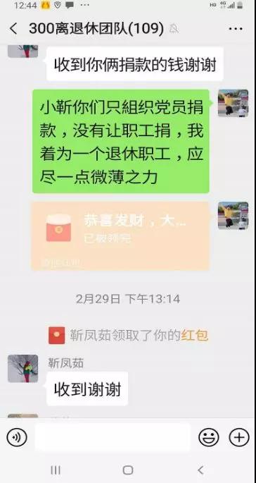 退休老职工的捐款,尤其感人。退休职工群里,发布了组织党员捐款的通知,群里的老党员们纷纷表示,自己不年轻了,去不了抗疫一线,以捐款的形式表达老党员们不忘初心,不辱医学誓言的初衷。