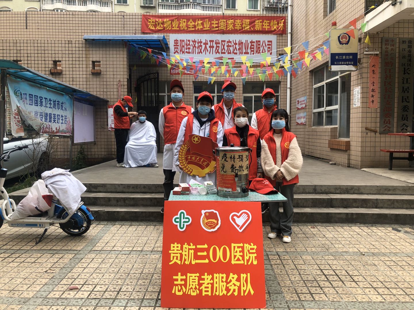 3月5日是学雷锋纪念日,上午分院联合团支部青年志愿者服务队在贵航三〇〇医院团委的组织下,成功开展“抗击疫情学雷锋 分院团青在行动”志愿服务活动。青年志愿者们走进黔江社区长江居委会,免费为奋战在防疫一线的社区工作人员理发,为社区百姓发放口罩、测温计及预防感冒的中药汤剂。