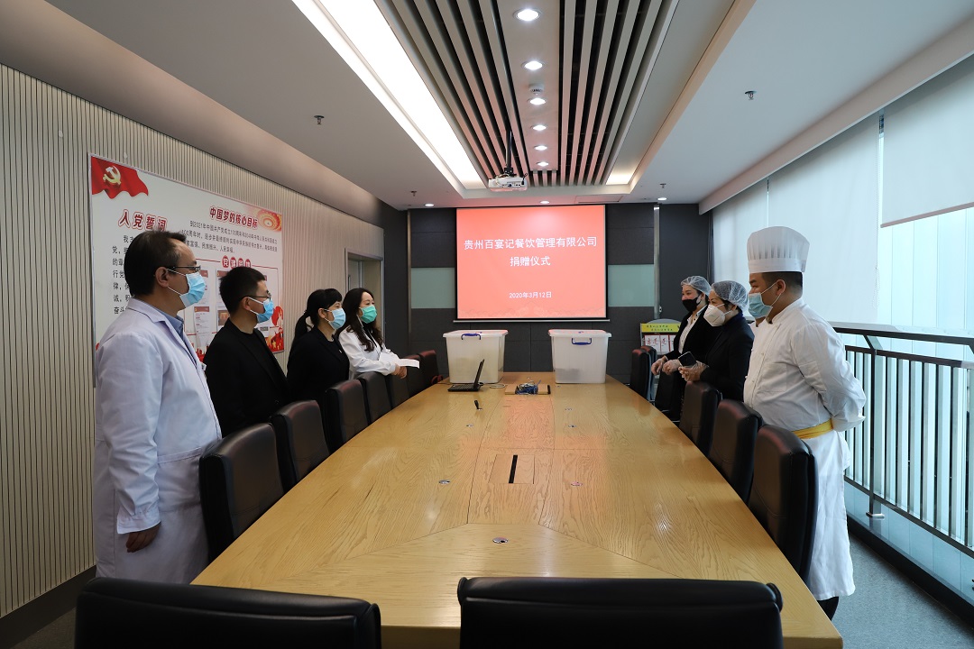 3月12日,贵州百宴记餐饮管理有限公司在防疫当下用实际行动参与战“疫”,公司负责人带领员工,为我院坚守在抗疫一线的医护人员送来了爱心盒饭,暖心之举让医护人员备受鼓舞。
