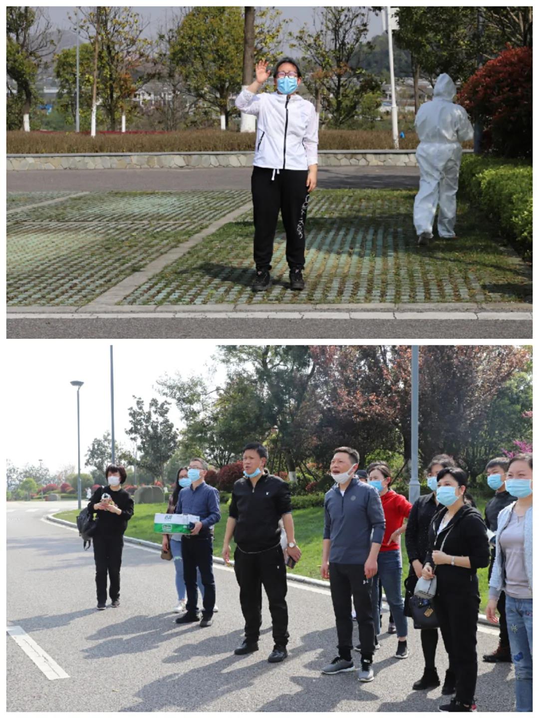 院领导班子在定点隔离酒店外与回归的英雄们视频连线,详细询问其身心健康状态,了解需要解决的实际困难。党委书记李义说,欢迎援鄂英雄们回家,你们是医院的骄傲,在全国人民为疫情紧张彷徨的危急时刻,你们主动请战,驰援鄂州,体现了医护人员救死扶伤、悬壶济世的责任和担当。