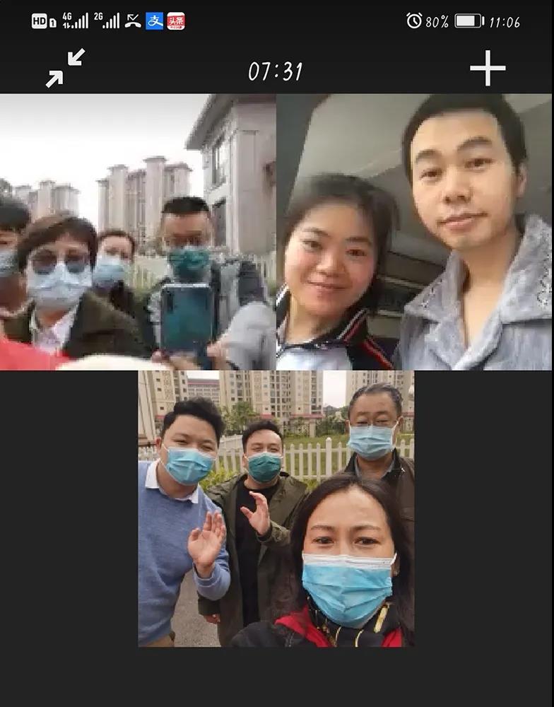 大家通过手机视频连线向他们传达爱的问候,虽然不能够热情地拥抱,可是这份爱是不能被隔离的。