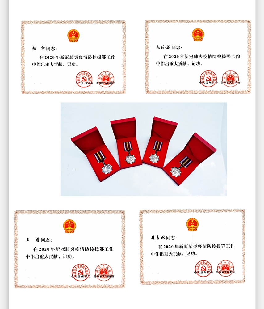 根据省委省政府主要领导批示精神,按照“送荣誉上门,送温暖进家”要求,贵州省卫生健康委领导对我院荣获省委省政府记功奖励的8名援鄂医疗队队员进行走访慰问,将省委省政府的关心关怀及奖励证书、奖章、奖金送上门。
