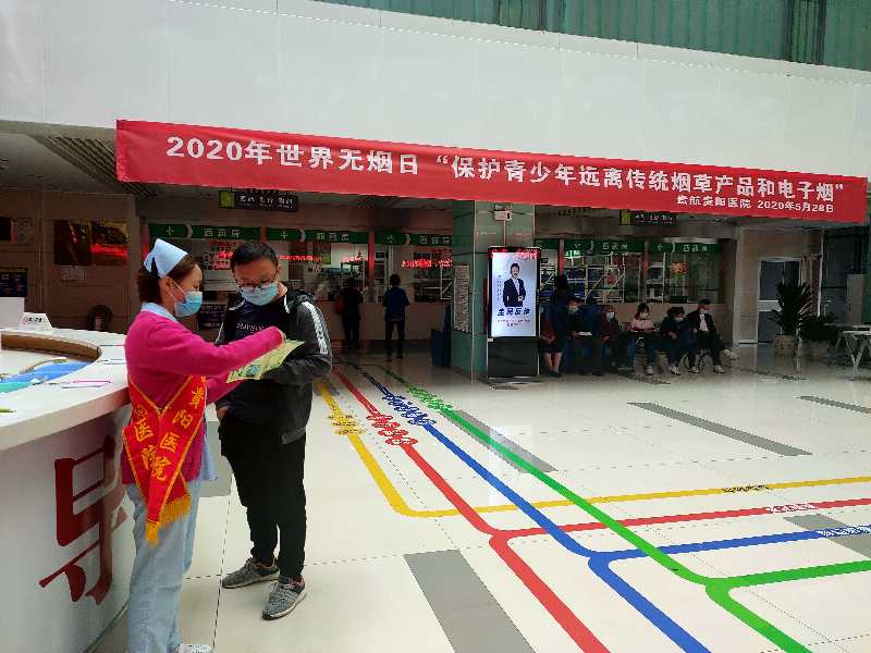 在世界无烟日到来之际,我院围绕今年的活动主题,开展了形式多样的宣传教育活动。首先,我院在门诊大厅悬挂宣传横幅,让前来就诊患者能够清晰的看见今年无烟日的活动主题,同时,门诊大厅不间断的播放如何戒烟、烟草的危害、戒烟的好处等视频,目的在于让广大群众了解、知晓和行动起来,遏制吸烟者数量增长;其次,制作了色彩鲜艳、内容丰富的宣传折页,由医务人员向就诊者和陪护人员发放,告知他们烟草制品的相关知识,同时呼吁他们向身边的家人、同事和朋友讲解烟草的危害,劝阻吸烟行为;最后,我院戒烟门诊为吸烟人群提供免费咨询服务,加强吸烟者对吸烟建立的长期慢性危害的认识,坚定他们戒烟的信心。