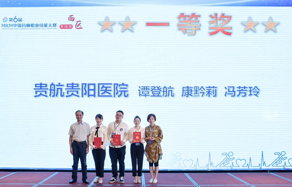 8月1日,由中国健康促进基金会主办的“第六届MKM中国药师职业技能大赛--西区晋级赛”在成都拉开帷幕。本次比赛由来自11个省份的33支队伍参加,我院药剂科谭登航、康黔莉、冯芳玲等三名药师组成的团队作为贵州省代表队之一进行参赛,经过激烈角逐,最终荣获“一等奖”,并将作为贵州省唯一的参赛队伍参加全国总决赛。