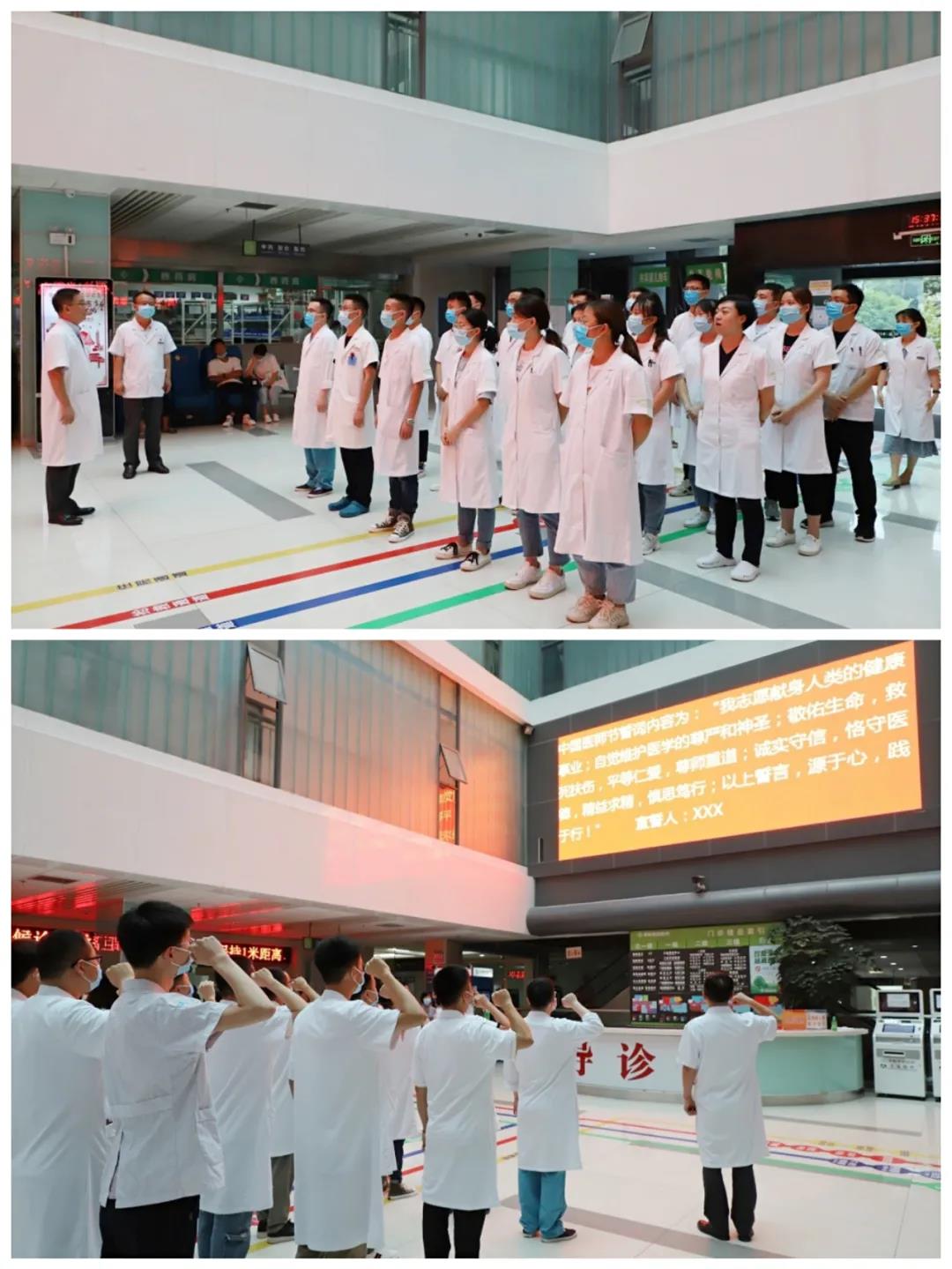 最后,在副院长赵敬飚的带领下举行了新入职医师宣誓仪式,一席白衣,铮铮誓言,这是充满仪式感的传承,“萌新们,接好前辈们手中的“接力棒”,带着梦想、光荣和责任,砥砺向前。”