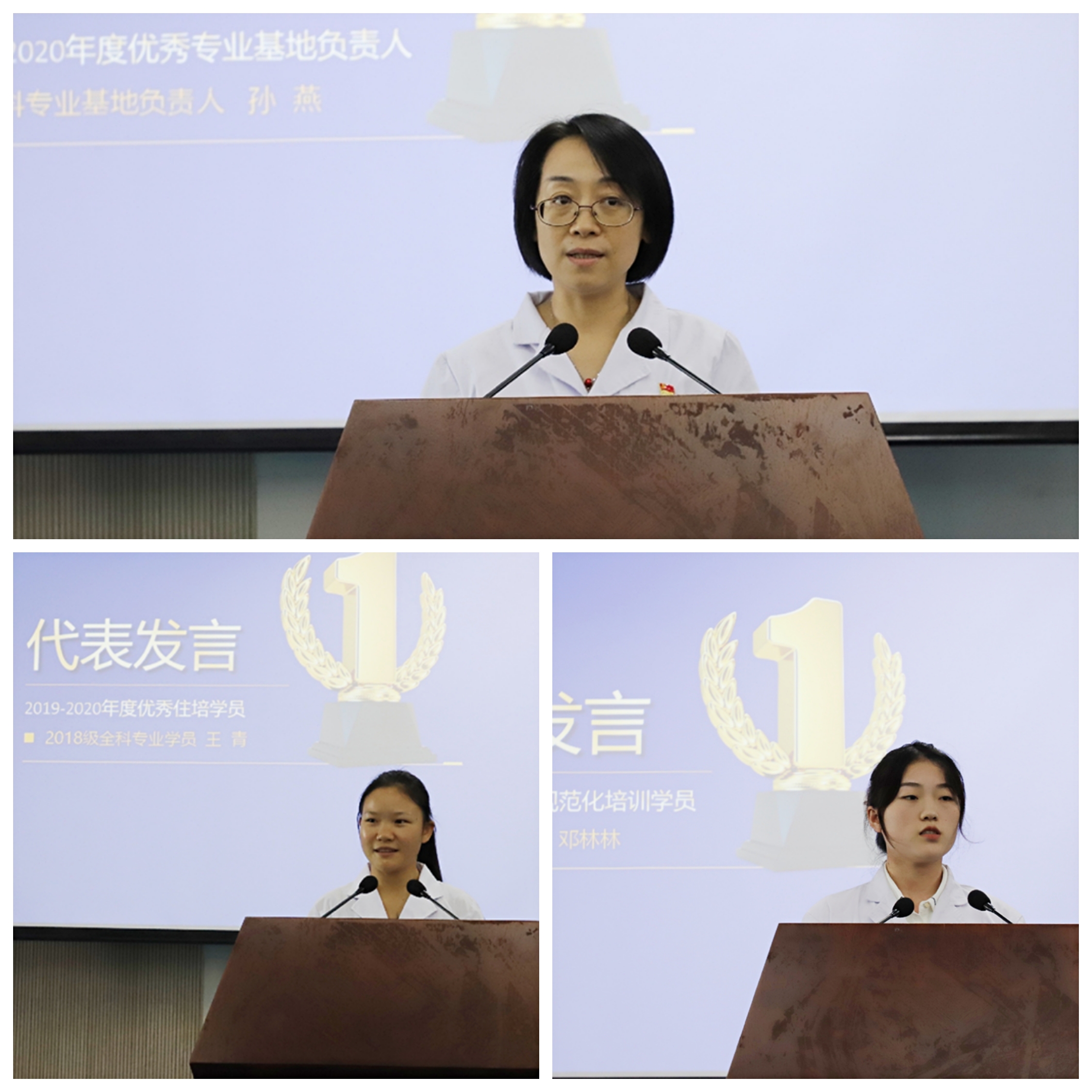 活动中,优秀教学工作者代表孙燕、优秀住培学员代表王青、2020级住培学员代表邓林林上台发言。随后,全体参会人员重温《医学誓词》。