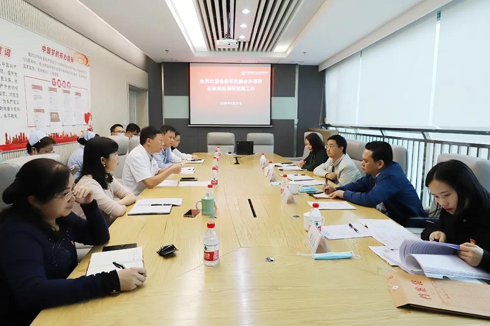 为深入贯彻落实新时代党的建设总要求,坚持党对公立医院的领导,全面加强公立医院党的建设,全面了解全省国防科工系统公立医院党的建设工作情况,9月23日,省委军民融合办(省国防科工办)副主任燕霖、省委军民融合办机关党委副书记、组织宣传处处长曾光明、省委军民融合办组织宣传处二级调研员曹佩兰一行四人莅临我院调研党建工作推进情况,医院党委成员、党支部书记参加了座谈会。