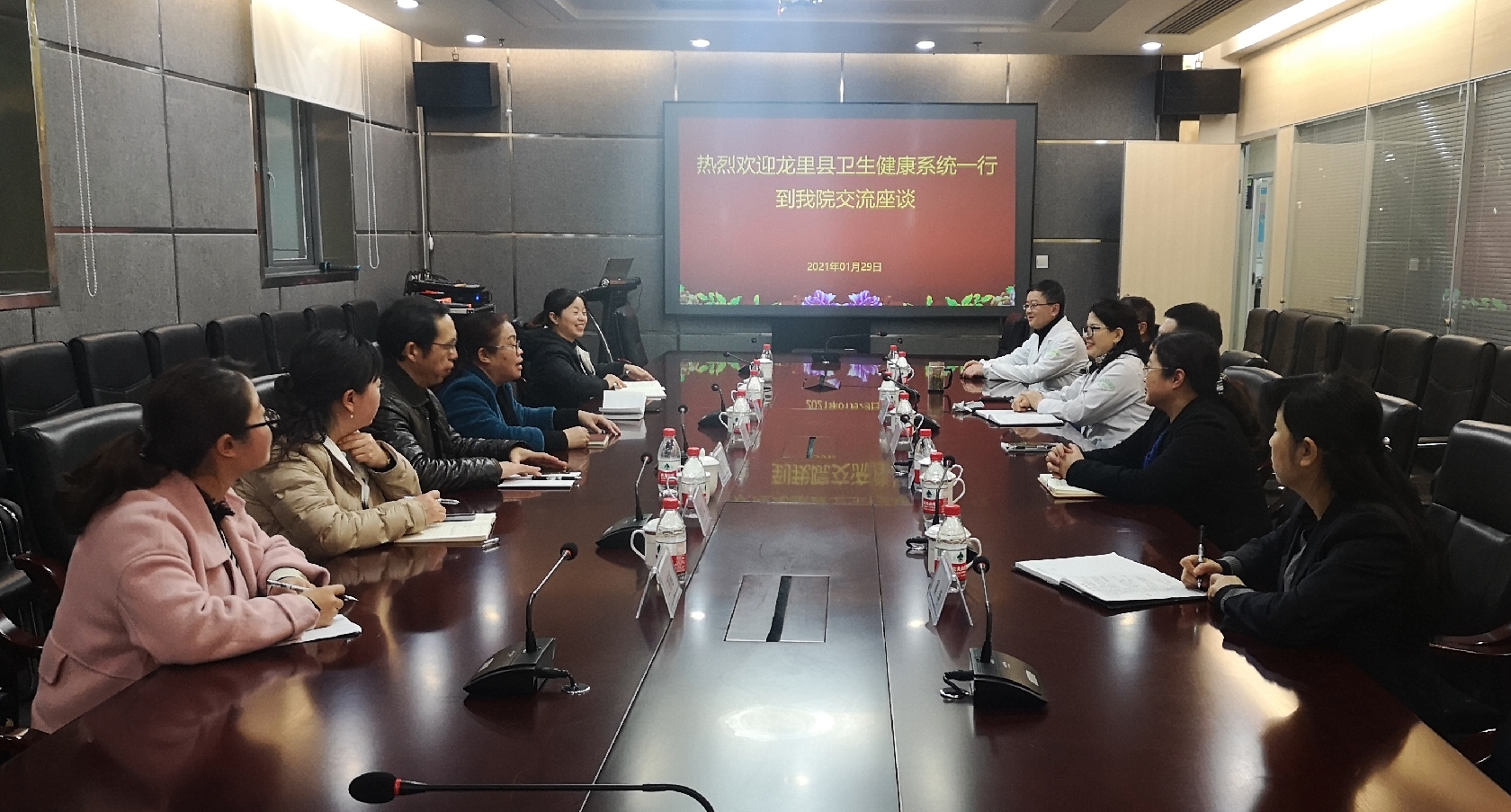 为进一步加强对口帮扶协作,提高龙里县医疗机构诊疗水平,更好为龙里县群众服务,1月29日,龙里县卫生健康局党组书记、局长、县人民医院党委书记罗显琴、龙里县人民医院院长杨卫东、龙里县中医医院党委书记徐茂国、院长袁步红、龙里县妇幼保健院院长岳萍等一行6人到我院对接对口帮扶事项,我院领导班子及相关部门负责人参加座谈交流。