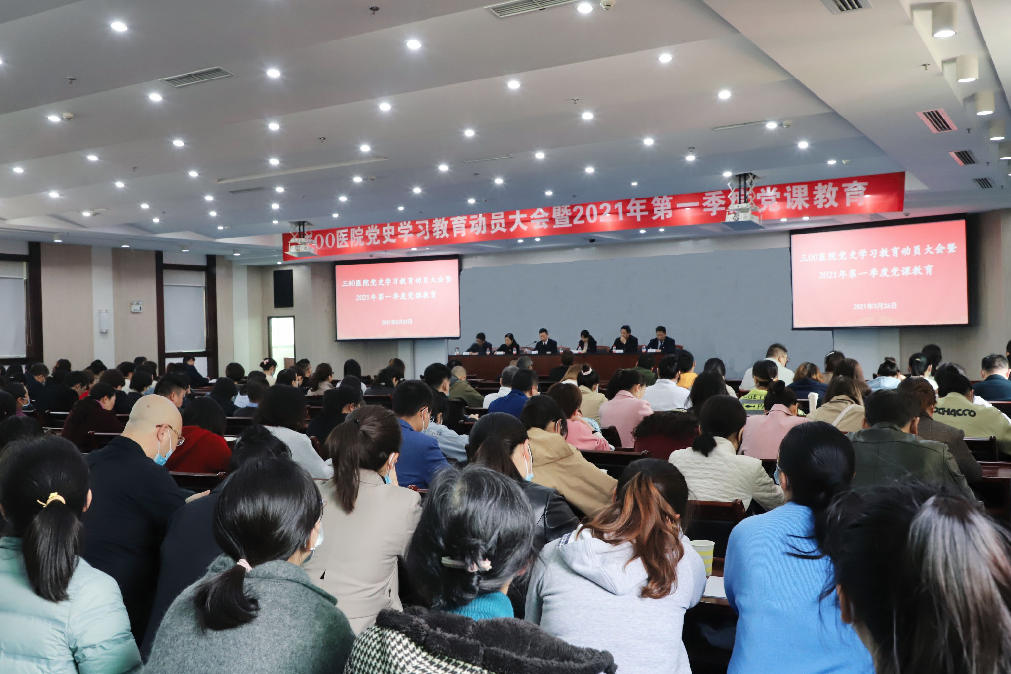 3月26日,通用医疗三〇〇医院召开党史学习教育动员大会暨2021年第一季度党课教育,认真学习贯彻习近平总书记在党史学习教育动员大会上的重要讲话精神,按照上级要求,对医院开展党史学习教育进行动员部署。医院党委书记李义作动员讲话并进行第一季度党课教育,会议由党委副书记、副院长杨旭艳主持,党政领导班子成员、全体党员、干部参加会议。