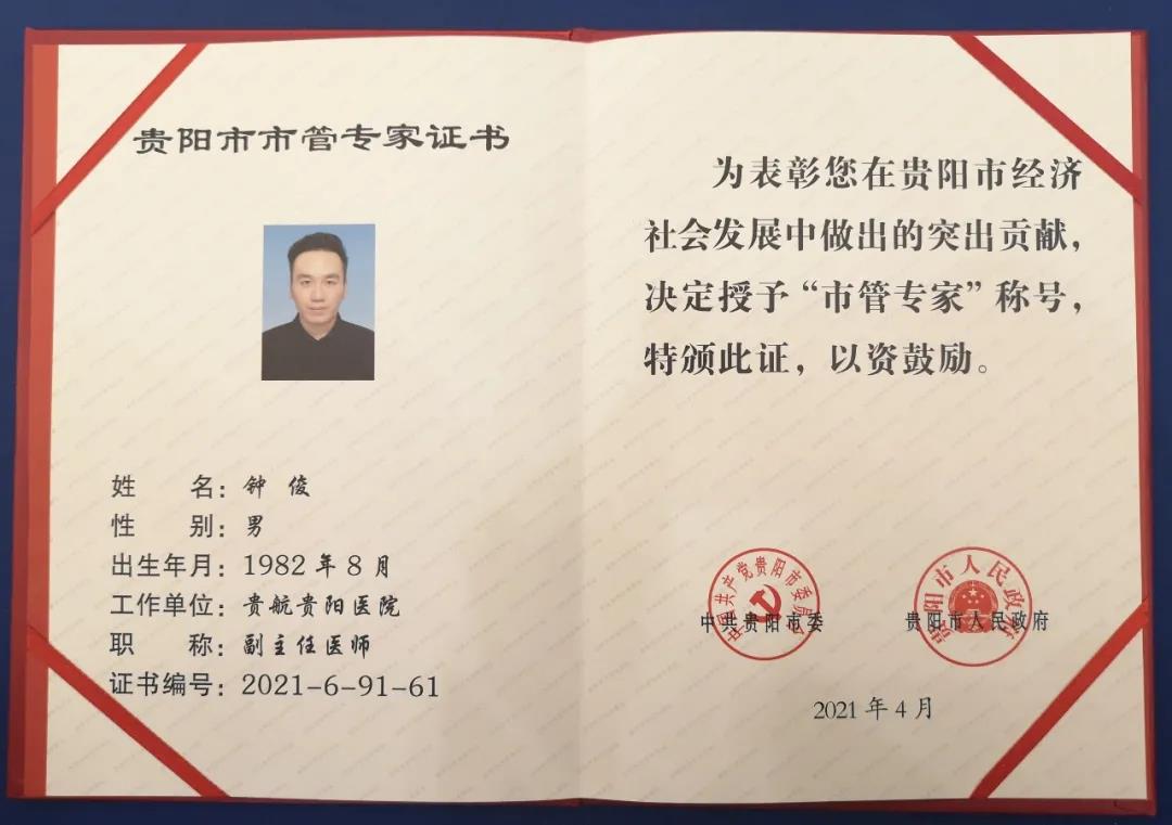 【喜讯】我院钟俊被命名表彰为贵阳市第六批市管专家