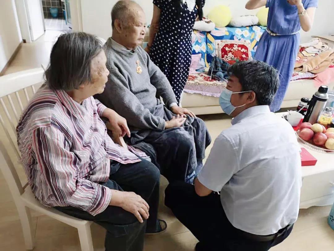 来到张克强家里,刘涛院长将中共中央颁发的“光荣在党50年”纪念章送到他的手中,并向他致以崇高的敬意和诚挚问候。同时,对老同志嘘寒问暖、把脉问诊、俯身为其查看腿部浮肿情况,亲似自己的家人。表扬老同志身体硬朗,眼睛情况良好,祝愿老同志健康长寿,安享晚年!
