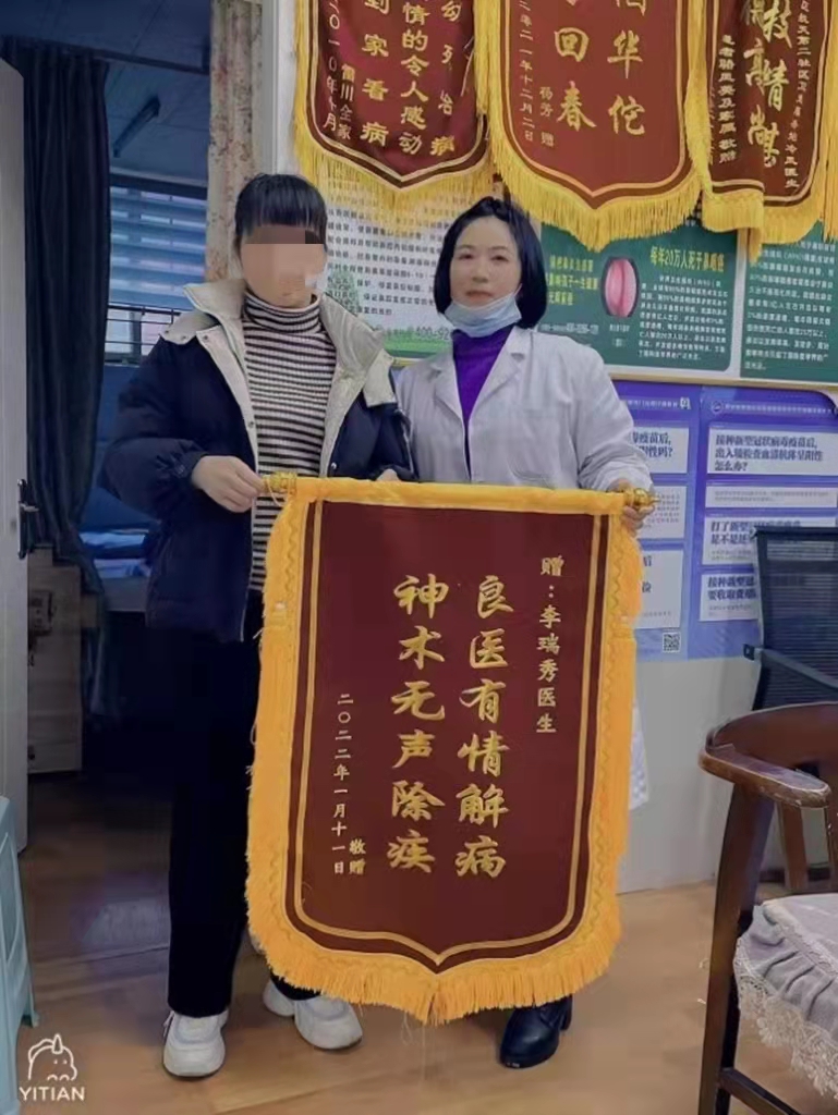 患者,女,32岁,受慢性鼻炎、鼻窦炎、妇科宫颈三度糜烂及盆腔积液等疾病困扰多年,自2021年10月份起,一直在漓江分院进行调理,经过精心治疗和调理,消除了困扰多年的疾病,患者感到非常高兴,特赠送锦旗一面。