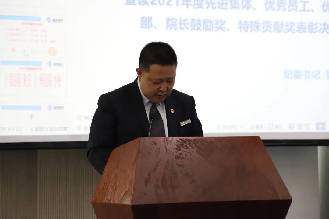 接着,纪委书记张雨翔宣读了《关于对2021年度先进集体、优秀员工、优秀干部、院长鼓励奖和特别贡献奖进行表彰的决定》文件,领导班子对先进集体和个人进行了颁奖。