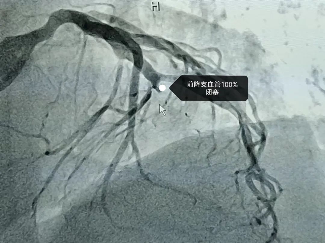 2022年5月4日7点00分家住小河的一位婆婆突感心前区疼痛,伴全身大汗,由于婆婆本身患有冠心病,于是自行服用了“速效救心丸”后胸痛症状稍缓解,可是3小时后婆婆胸痛症状再次发作,程度较前一次更加剧烈,胸痛症状持续不能缓解,在告知家属后立即拨打我院急救120电话,11点15分达到我院急诊科,急诊科医师第一时间通知心内科总住院医师会诊,根据胸痛及心电图表现诊断急性心肌梗死,心脏介入团队随即在导管室集合,11点35分进入导管室开始手术,术中发现冠状动脉最重要的一个分支---前降支完全闭塞,11点50分导丝顺利通过前降支闭塞病变,D to W时间35分钟,并植入支架完全恢复前降支血流,至此,婆婆顺利脱险。