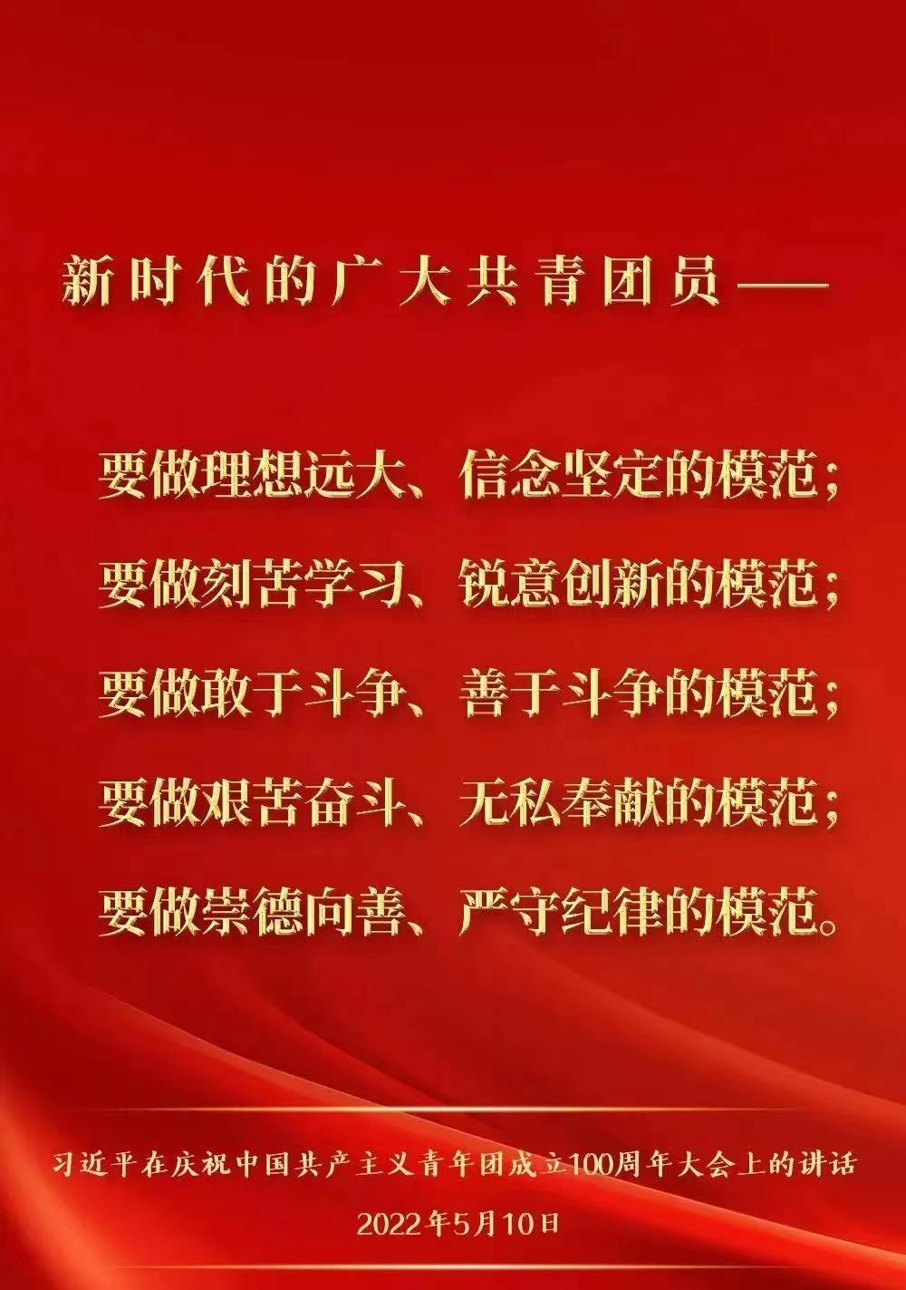 2022年5月10日上午10时,庆祝中国共产主义青年团成立100周年大会在人民大会堂隆重举行,中共中央总书记、国家主席、中央军委主席习近平出席大会并发表重要讲话。习近平总书记指出,青春孕育无限希望,青年创造美好明天。一个民族只有寄望青春、永葆青春,才能兴旺发达。今天这场隆重集会,庆祝中国共产主义青年团成立100周年,就是要激励广大团员青年在实现中华民族伟大复兴中国梦的新征程上奋勇前进。