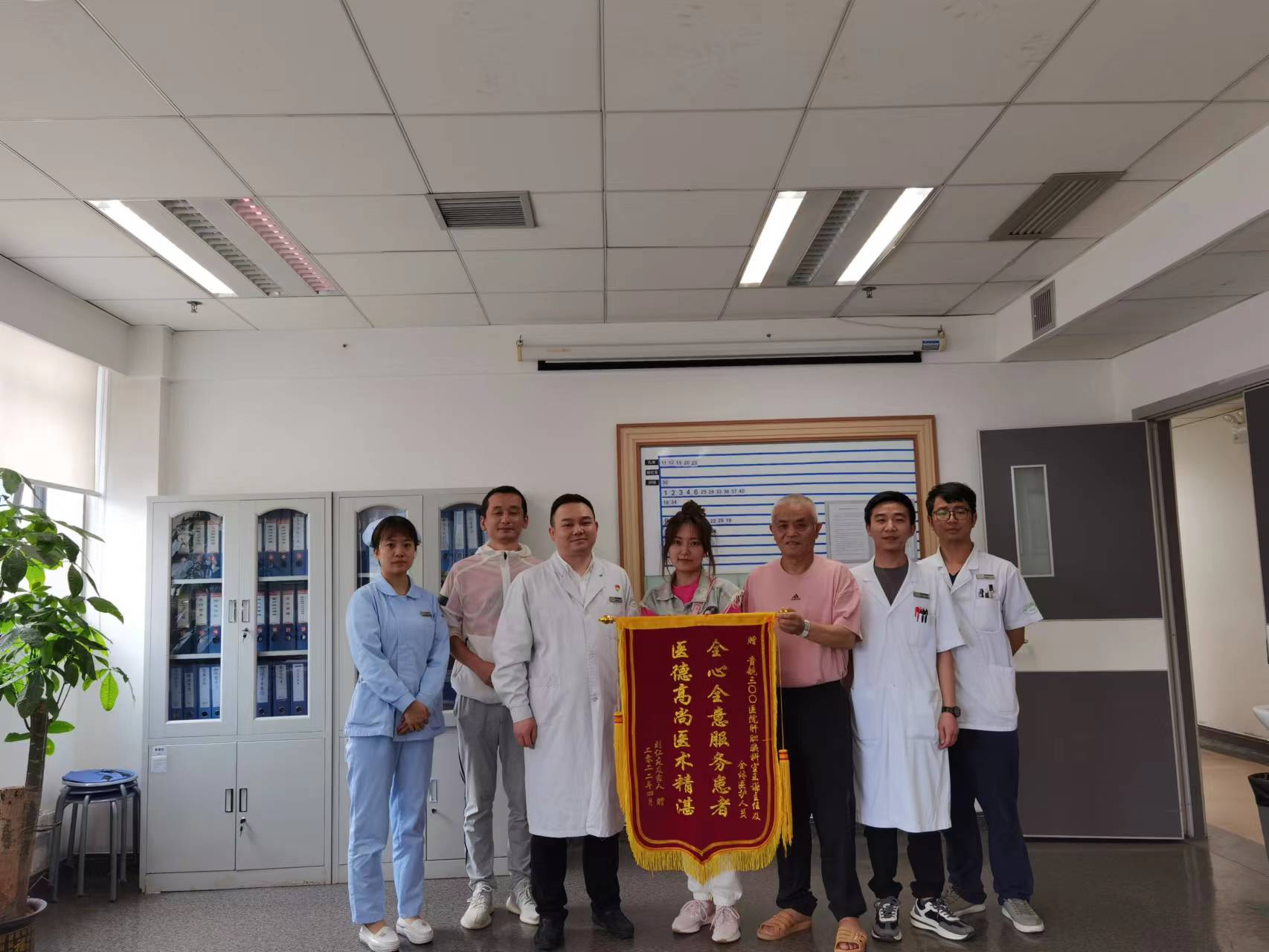 近日,一位患者及家属对我院肝胆胰外科表示认可与鼓励,他们向王学汉教授、王谦副主任、李宇阳住院医及全体医护人员送来了一面写有“医德高尚医术精湛,全心全意服务患者”的锦旗,高度赞扬了我院精湛的医疗技术,以及细致入微的医疗服务。