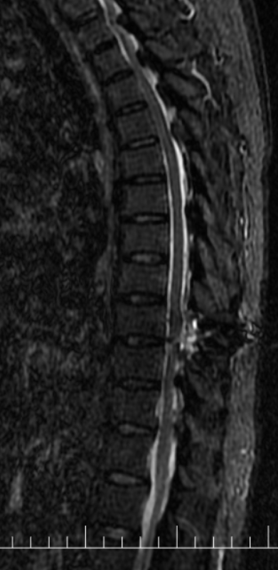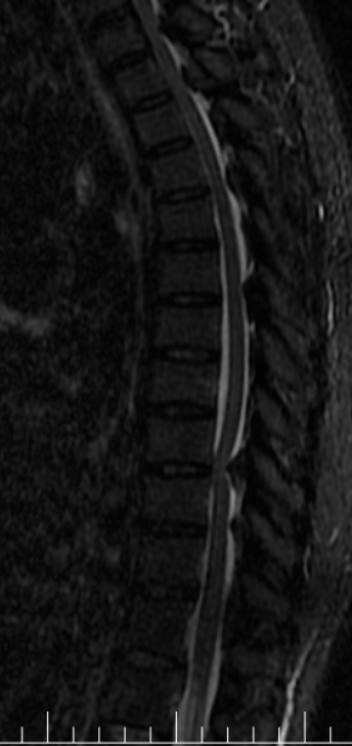 患者1+年前无明显诱因出现行走不稳症状,自诉有“踩棉感”,继而出行行走困难,近1+月明显加重,无法上下楼。对于一个居住在5楼(步梯)的患者来说,出门也变成了奢望。患者曾因为此症状反复就诊于省内外多家三甲医院,因体征不典型及相对复杂的既往史,曾被考虑为“糖尿病周围神经病变”、“焦虑症”等,长达1+年的治疗并没有使症状得到改善,反而逐渐加重,行走都只能靠助行器,甚至弯腰拾物简单的动作都不能执行,抱着尝试再一下的心态,患者就诊于我院,以椎管狭窄收入病房。入院早期因患者既往“焦虑症”的诊断,以及症状体征的不典型也给我科医务工作者在考虑诊断时造成了误导,经过反复积极查体考虑椎管狭窄,于是积极完善了脊柱的影像学检查,颈椎间盘、胸部及腰椎间盘CT:1、颈椎退行性变并颈椎椎管明显狭窄、颈2-3左侧椎间孔变窄;2、胸椎退行性变并胸1-7节段椎管轻度狭窄。胸腰椎MRI回示:1、颈椎退行性变并颈1-7水平后纵韧带增厚、钙化,继发椎管节段性狭窄。2、胸椎多段黄韧带增厚、钙化,继发相应椎管狭窄,脊髓节段变性(胸1-2及胸9-10水平)。结果出来后医生犯难了,问题找到的同时发现狭窄的地方及位置太多了,对于这种颈胸椎多处狭窄的病人想通过一个手术去解决几乎是不可能事情,针对此种情况,科内医师多次病例讨论,结合患者影像学检查、症状及体征,瞄准了T9-10平面的巨大黄韧带骨化。