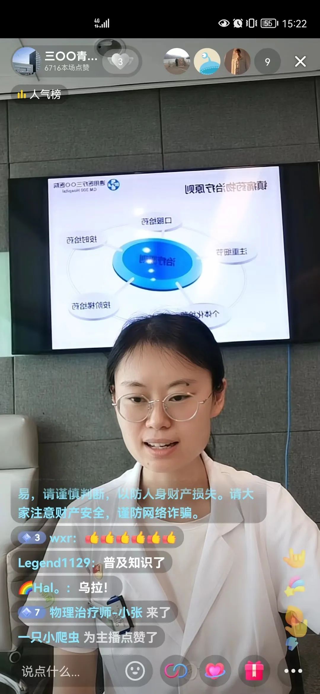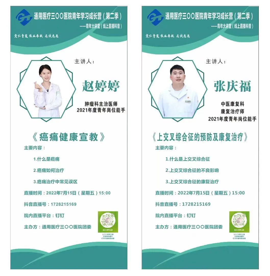 中医康复科张庆福作了关于《上交叉综合征的预防及康复治疗》、肿瘤科赵婷婷作了《癌痛健康宣教》的专题线上直播。
