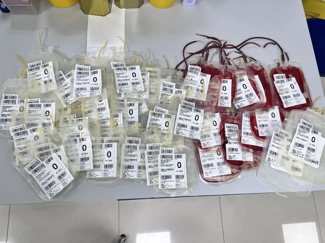 昨日下午,急诊科收治一名危重患者,是因修理水管炸裂,全身多发伤,送至医院时,患者已休克,情况非常危急。急诊科快速抽来病人的血,甲乳疝外科送来输血申请单,经过抢救、多科会诊,转入心胸外科,并于21:20实施手术。接到手术室电话后,输血科值班人员全力配合,核对病人信息后,配血,发血,并联系贵州省血液中心发放两个治疗量的血小板,术中病人一共用了16U红细胞悬液,1750ml血浆,20U冷沉淀凝血因子,经过连续7个多小时手术后成功抢救患者生命,术后转入ICU,在ICU还用了4U红细胞悬液,目前情况平稳。