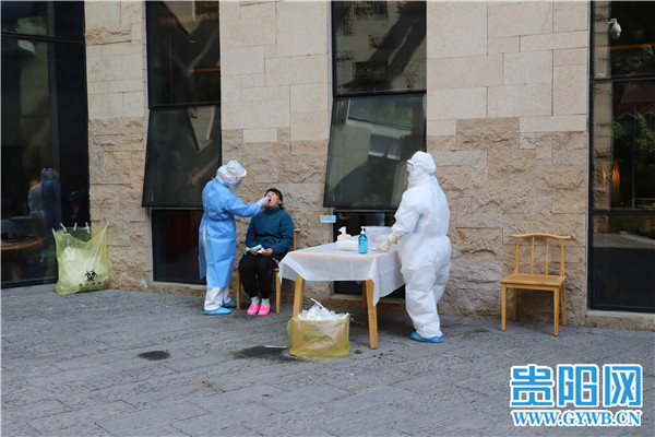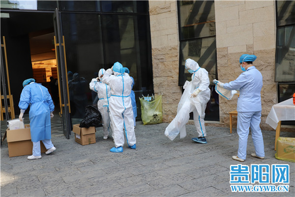 据悉,本次核酸检测地点设置在贵州援鄂医疗队返黔定点隔离酒店,接受检测的返黔队 员相互保持距离,排队进行核酸检测。核酸检测时医护人员要直接和检查人员的呼吸接触,所以必须做好全方位的防护。穿隔离衣、防护服、防护口罩、护目镜、面屏、医用 乳胶手套、防水靴套,每个步骤都不能有错。