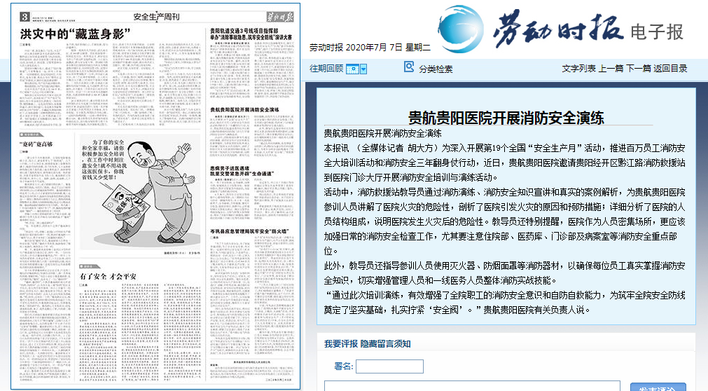 2020年6月18日《劳动时报》报纸报道:贵航贵阳医院争分夺秒完成一例断肢再植手术