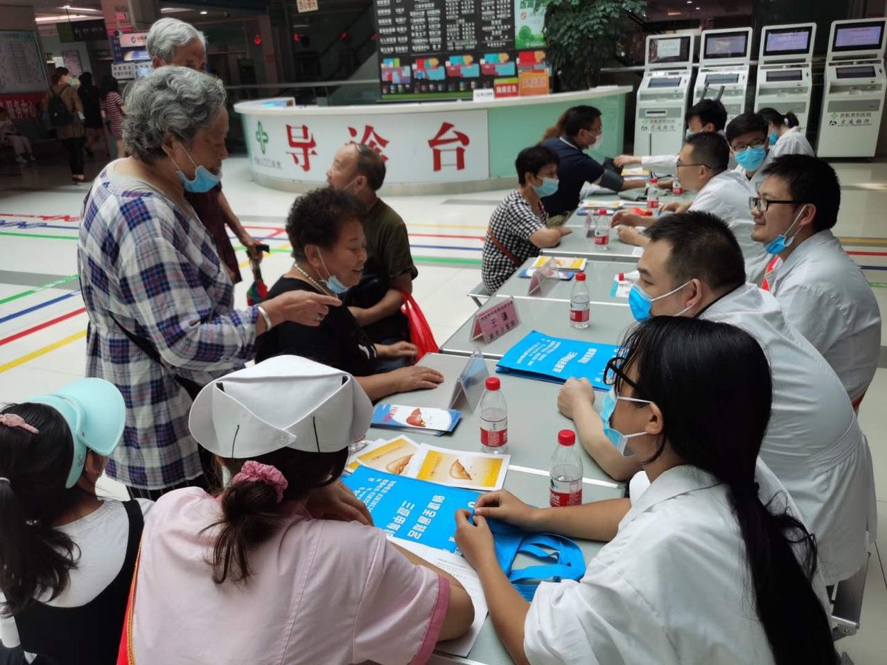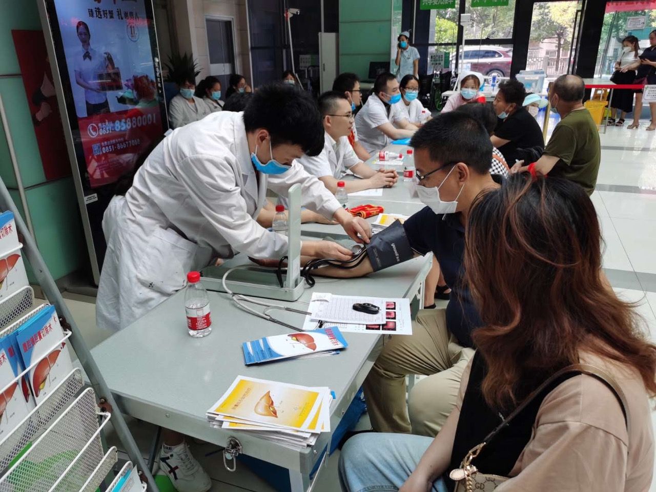 活动当天,义诊现场的医护人员们,通过向市民发放宣传手册、给市民检测血压、免费专家看诊等多种形式进行积极健康咨询宣传。