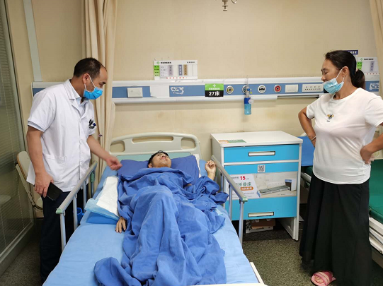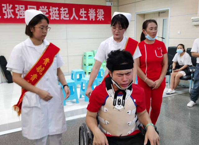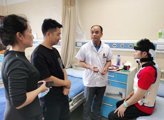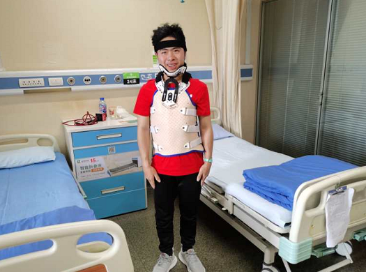 经过二十多天的修养,22 岁的张强重新 " 站直 " ,在贵航三〇〇医院骨科病房里,可以看到下床活动的张强,虽然穿戴着护具,行走有些不便,但是张强依然坚持进行康复锻炼。