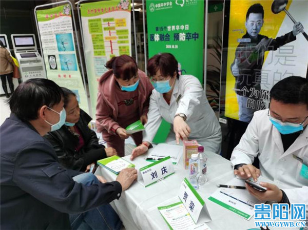 贵阳网讯 2020年10月29日是第十五个世界卒中日,当天上午,贵阳市各家医院开展了卒中日义诊活动。旨在通过此次线上线下的宣讲活动,提高群众对脑卒中的预防、快速识别、规范治疗的了解,进而降低脑卒中的发生率,降低家庭因卒中救治产生的就医成本。